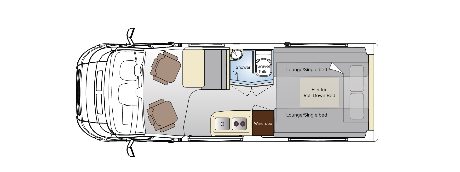 Roughing it isn’t an option with the Avida Escape campervan. The Avida Escape campervan is one of the most unique campervans on the market being able to sleep four. At the touch of a button, the large electric bed drops down from the ceiling.