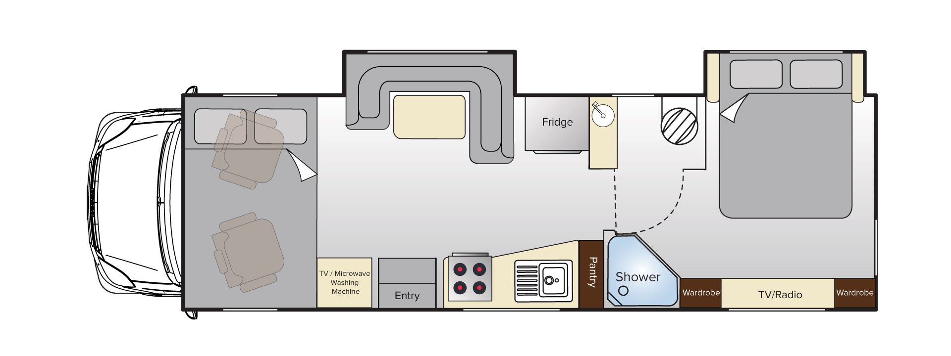 The Avida Fremantle motorhome range is innovation and luxury throughout, matched with the reliable Iveco 70C-21 E6 chassis. Two large slide out rooms – increasing your living and bedroom space with the touch of a button.